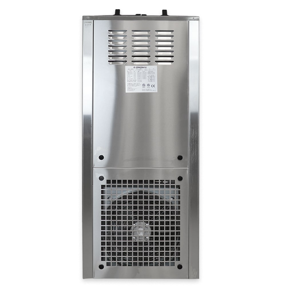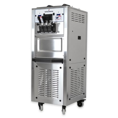 The 6250A-C is a premium twin twist (two flavor) floor standing, pressurized (air pump) soft serve machine. Capable of producing a variety of soft serve products including ice cream, frozen yogurt, custards, and sorbets. Easy to use dual digital user interface and control system maintains excellent product consistency, hopper temperature, and high-performance parameters. Hopper refrigeration and sleep/standby feature keep product fresh and is approved for dairy or non-dairy products. The Spaceman air pump system allows you to choose between six overrun settings, giving you the ability to add even more air to the product, yielding higher profits, creamier, fluffier, and lighter product. Add an air pump anytime you wish to dip cones, swirl extra high, or get that light Instagram famous look! Hopper agitators stir product throughout the day, saving operator time and ensuring consistent dairy safe cooling in the hopper. Patented freezing technology on the 1.8qt cylinders means a super-fast recovery time, capable of producing over 350 small 4oz servings per hour. Spaceman soft serve freezers have patented technology to prepare and freeze product faster and more efficiently than any competitor. Spaceman’s revolutionary V2 beater and PAR (product to air ratio) system reduces wearable parts by over 25% while improving product quality and overrun control. The V2 beater and blade system scrape the cylinder walls to ensure less ice buildup – creating smoother, creamier product. The 6250-C comes equipped with four heavy duty rotating and locking caster wheels and an eight foot cord and plug.