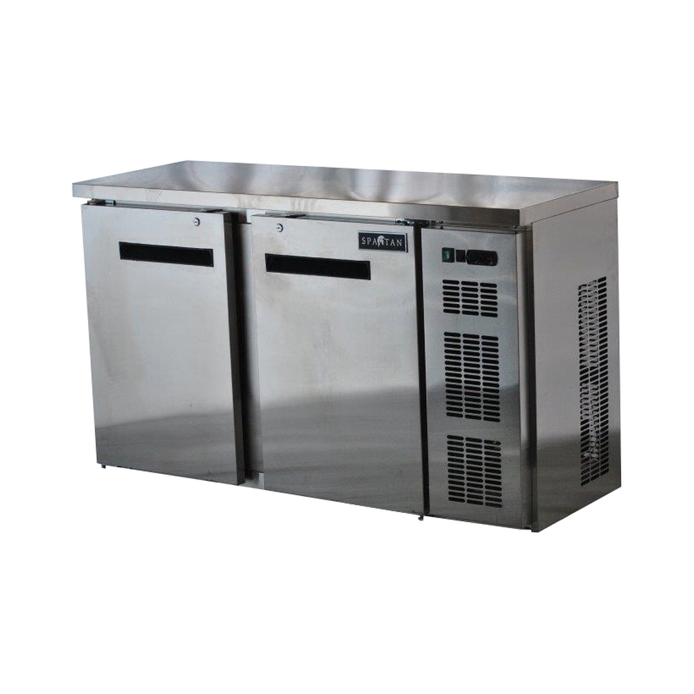 This Spartan, 58″ wide 2 Soild Swing Door, 1/4 hp Back Bar Cooler conveniently stores a variety of bottles behind the bar so that they’re ready to serve at any times! With this 4 Adjustable Shelves and 12 cu. ft refrigerator, you gain storage space for your most popular beers, ales, ciders, and other popular bar beverages or ingrediants. Its narrow design makes it more compact than similar units, making it ideal for operations that are tight on space. The eco-friendly R134a refrigerant maintains a 32° – 40° F temperature range while benefiting the environment. It features a Right Mounted compressor location and a handsome but durable Stainless Steel Exterior, enabling it to intergrate perfectly with your bar