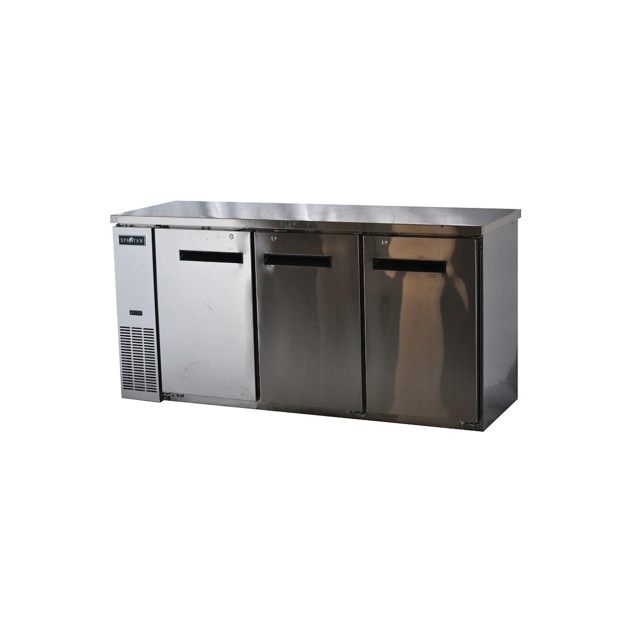 This Spartan, 73″ wide 3 Solid Swing Door, 1/3 hp Back Bar Cooler conveniently stores a variety of bottles behind the bar so that they’re ready to serve at any times! With this 6 Adjustable Shelves and 19.6 cu. ft. refrigerator, you gain storage space for your most popular beers, ales, ciders, and other popular bar beverages or ingredients. Its narrow design makes it more compact than similar units, making it ideal for operations that are tight on space. The eco-friendly R134a refrigerant maintains a 33° – 38° F temperature range while benefiting the environment. It features a Left Mounted compressor location and a handsome but durable.