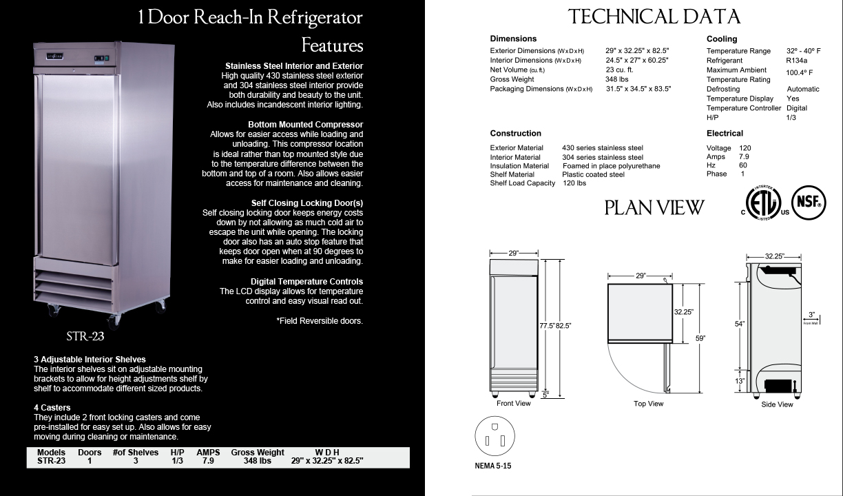 High quality 430 stainless steel exterior and 304 stainless steel interior provide both durability and beauty to the unit. Also includes incandesent interior lighting