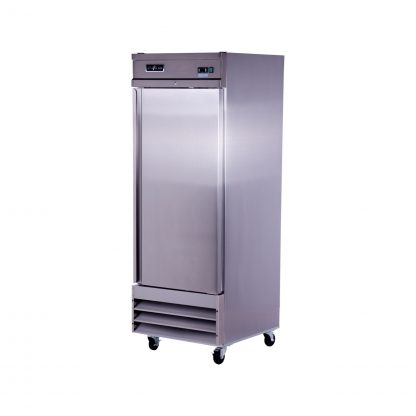 Self closing door keeps energy cost down by not allowing as much cold air escape the unit while opening. The Locking door also has an auto stop feature that keeps door open when at 90 degrees to make for easier loading and unloading.