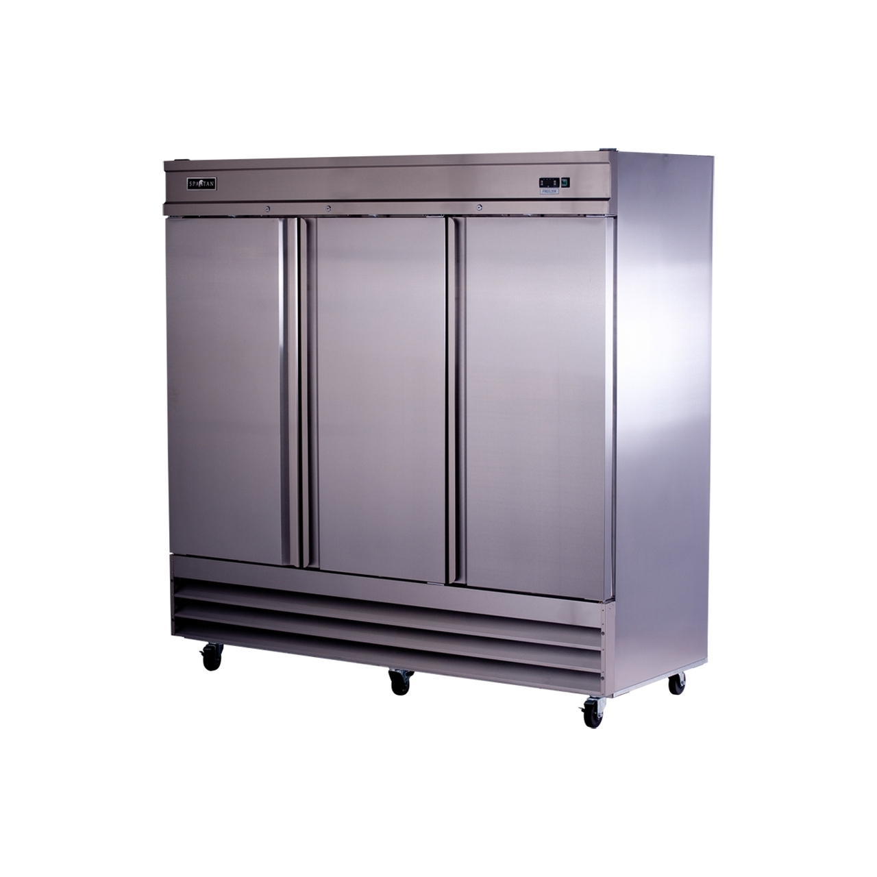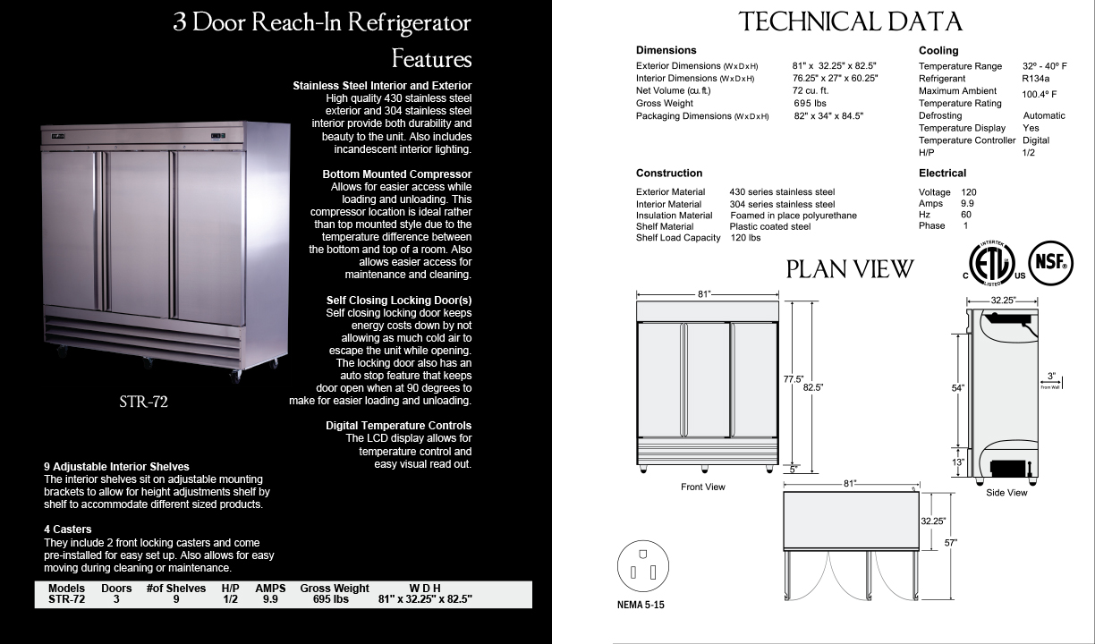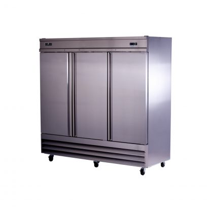 Self closing door keeps energy cost down by not allowing as much cold air escape the unit while opening. The Locking door also has an auto stop feature that keeps door open when at 90 degrees to make for easier loading and unloading.
