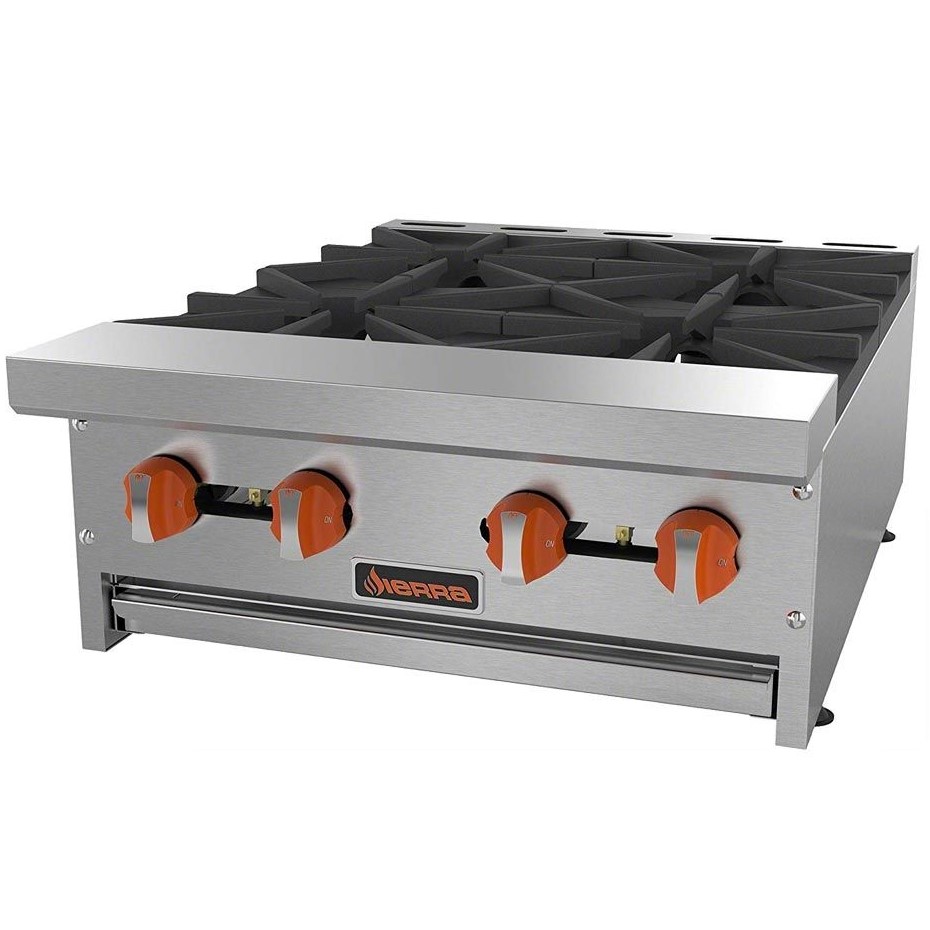 This 24″ wide comes with 4 lift top cast iron burners delivering a total of 120,000 BTU heating power. Stainless steel pilots provide instant ignition on each burner. Manual controls and a galvanized back are standard in this model. The stainless steel exterior is not only easy to clean but also protects your hot plate from rust and corrosion.