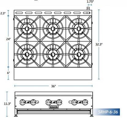 This 36″ wide comes with 6 lift top cast iron burners delivering a total of 180,000 BTU heating power. Stainless steel pilots provide instant ignition on each burner. Manual controls and a galvanized back are standard in this model. The stainless steel exterior is not only easy to clean but also protects your hot plate from rust and corrosion.