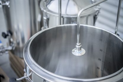 Others that are familiar with our insulated vessels, can increase the sparge water temperature by a nominal amount to account for initial insulated vessel related heat loss. Once heated, transfer your sparge water to your hot liquor tank, and place the vessel on the upper tier of your gravity setup. Take care to make sure you have a few feet of height delta between the hot liquor tank and mash tun to encourage the proper flow of sparge water.