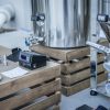 5. Next, move your cleaned and sanitized BME Chronical 7Gal vessel near your kettle. Take care to move your kettle to the middle gravity tier, making sure the kettle bottom is above the top of the Chronical, you are now done with the burner. Be very careful, your kettle will be extremely hot.