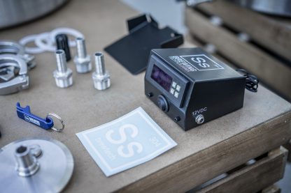 6. Move your Chronical into your fermentation area and hook up the included FTS’s controller. Finally, we recommend using an ice bath to cool your wort down to your yeast’s ideal pitch temp using the Chronical’s included chiller coil. Fill your insulated Hot Liquor Tank or a cooler with ice and water, and submerge the included FTSs pump. This allows the system to run, cooling your wort. Once you reach the desired pitch temp, you can either vigorously move your Chronical from side to side to aerate your wort prior to pitching yeast, or you can use one of the widely available wort oxygenation kits on the market. Finally, briefly remove the blow off cane to pitch your yeast, then reinstall the blow-off cane and rig a blow off using a small piece of the 1/2″ ID tubing attached to the end of the blow-off cane. Double check that the set temperature on your FTSs controller is within the ideal temp range for the yeast strain you are using. Then refresh the ice bath or setup a new ice bath using a cooler. Check the ice bath periodically to ensure there is ample chill water for the fermenter to allow the FTS’s system to maintain temps.