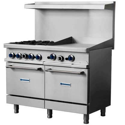 Standard Range SR-R48-24MG-LP 48″ Liquid Propane Commercial Range with 4 Burner, 24″ Griddle, 2 Oven – 246,000 BTU