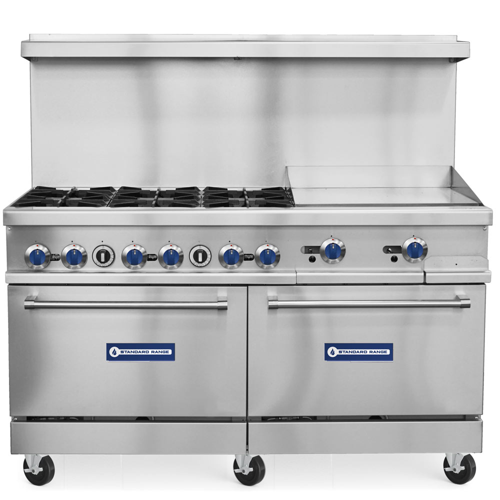 All Standard Range gas restaurant ranges ship setup for natural gas with included propane conversion kit. Professional installation is required.