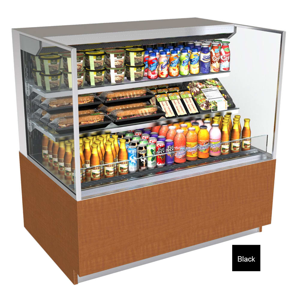 Reveal Self-Service Refrigerated Case, freestanding, 35-3/4″W, 47-1/8″H, Breeze-E (Type II) with EnergyWise self-contained refrigeration, (2) removable & adjustable clear glass shelving, LED top & shelf lights, full end panels, upper rear solid back panel, blue fin coated coil, condensate pan, black exterior & interior, cETLus, ETL-Sanitation