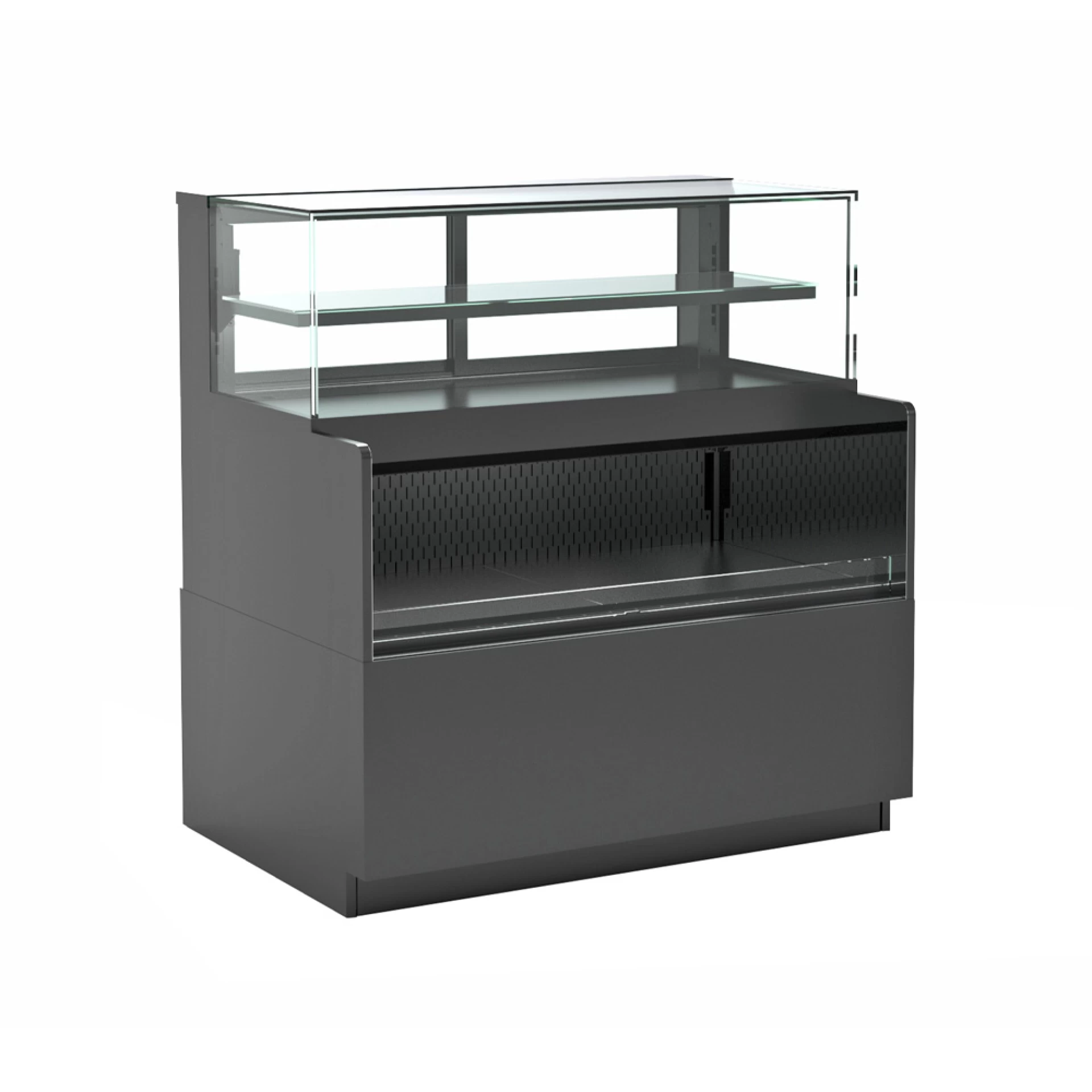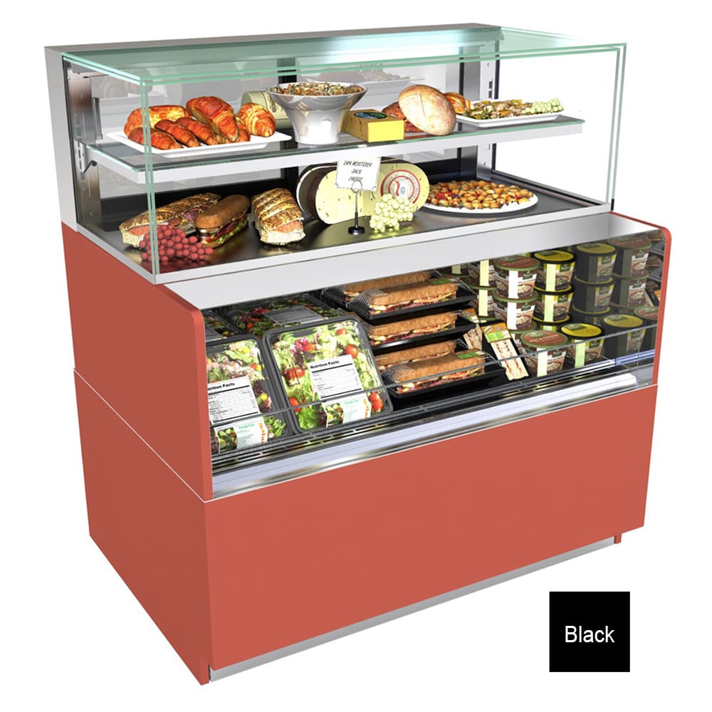 Reveal Combination Convertible Service Above Refrigerated Self-Service Case, freestanding, 35-3/4″W, 50-3/4″H, Breeze-E (Type II) with EnergyWise self-contained refrigeration, LED top light, fixed vertical glass, black front panel, upper rear clear glass sliding doors, blue fin coated coil, condensate pan, black exterior & interior, cETLus, ETL-Sanitation
