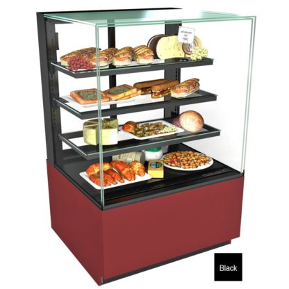 Reveal Service Refrigerated Case, freestanding, 35-3/4″W, 54-5/8″H, Breeze-E (Type II) with EnergyWise self-contained refrigeration, (3) removable & adjustable clear glass shelving, LED top & shelf lights, vertical, fixed front & side uv frameless glass, full end panels, clear glass rear sliding doors, blue fin coated coil, condensate pan, black exterior & interior, cETLus, ETL-Sanitation