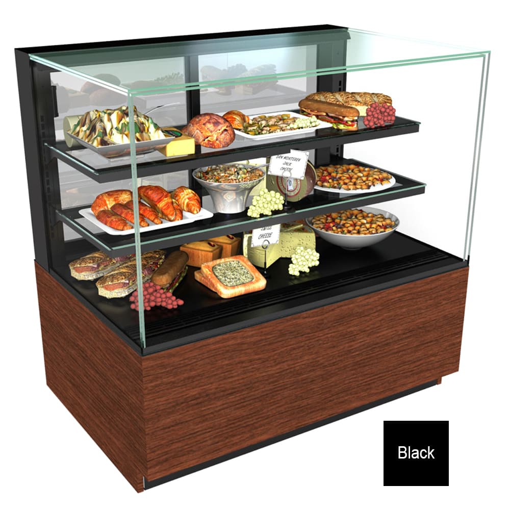 Reveal Service Refrigerated Case, freestanding, 47-3/4″W, 47-1/8″H, Breeze-E (Type II) with EnergyWise self-contained refrigeration, (2) removable & adjustable clear glass shelving, LED top & shelf lights, vertical, fixed front & side uv frameless glass, full end panel, clear glass rear sliding doors, blue fin coated coil, condensate pan, black exterior & interior, cETLus, ETL-Sanitation