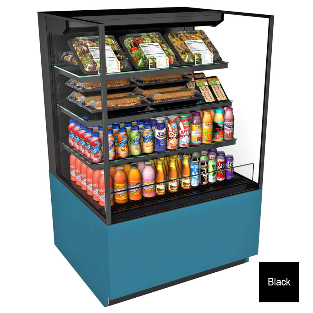 Reveal Self-Service Refrigerated Case, freestanding, 47-3/4″W, 54-5/8″H, Breeze-E (Type II) with EnergyWise self-contained refrigeration, (3) removable & adjustable clear glass shelving, LED top & shelf lights, full end panels, upper rear solid back panel, ABS plastic tub, blue fin coated coil, condensate pan, black exterior & interior, cETLus, ETL-Sanitation