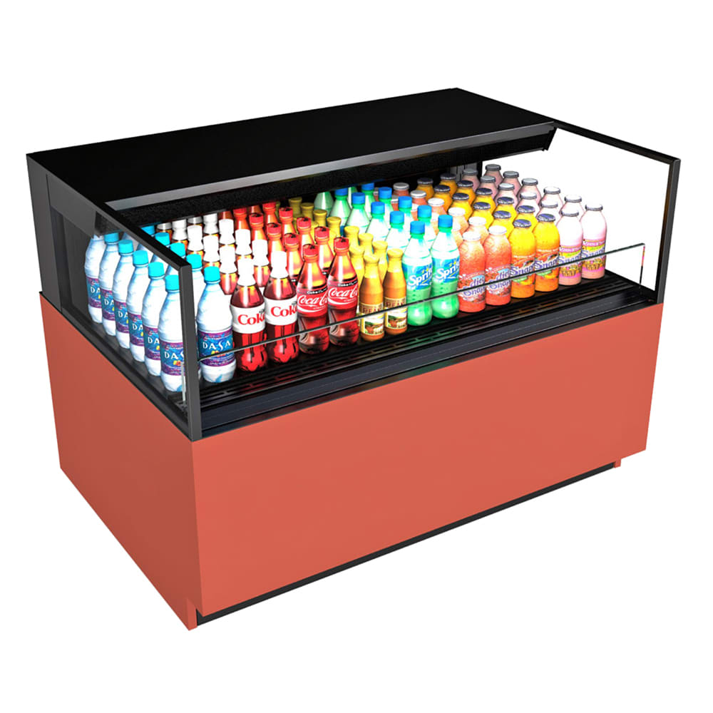 Reveal Self-Service Refrigerated Case, freestanding, 59-3/4″W, 32-7/8″H, Breeze-E (Type II) with EnergyWise self-contained refrigeration, LED top light, full end panels, upper rear solid back panel, ABS plastic tub, blue fin coated coil, condensate pan, black exterior & interior, cETLus, ETL-Sanitation