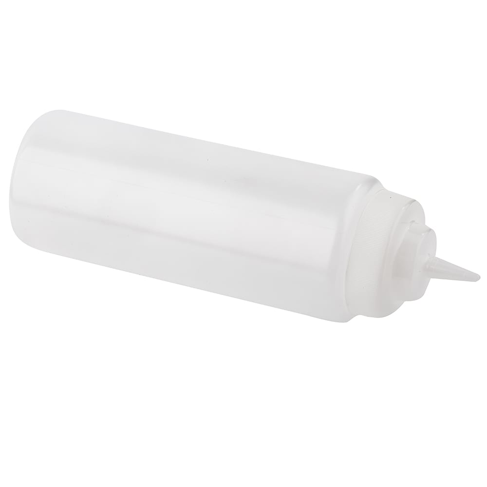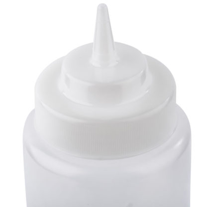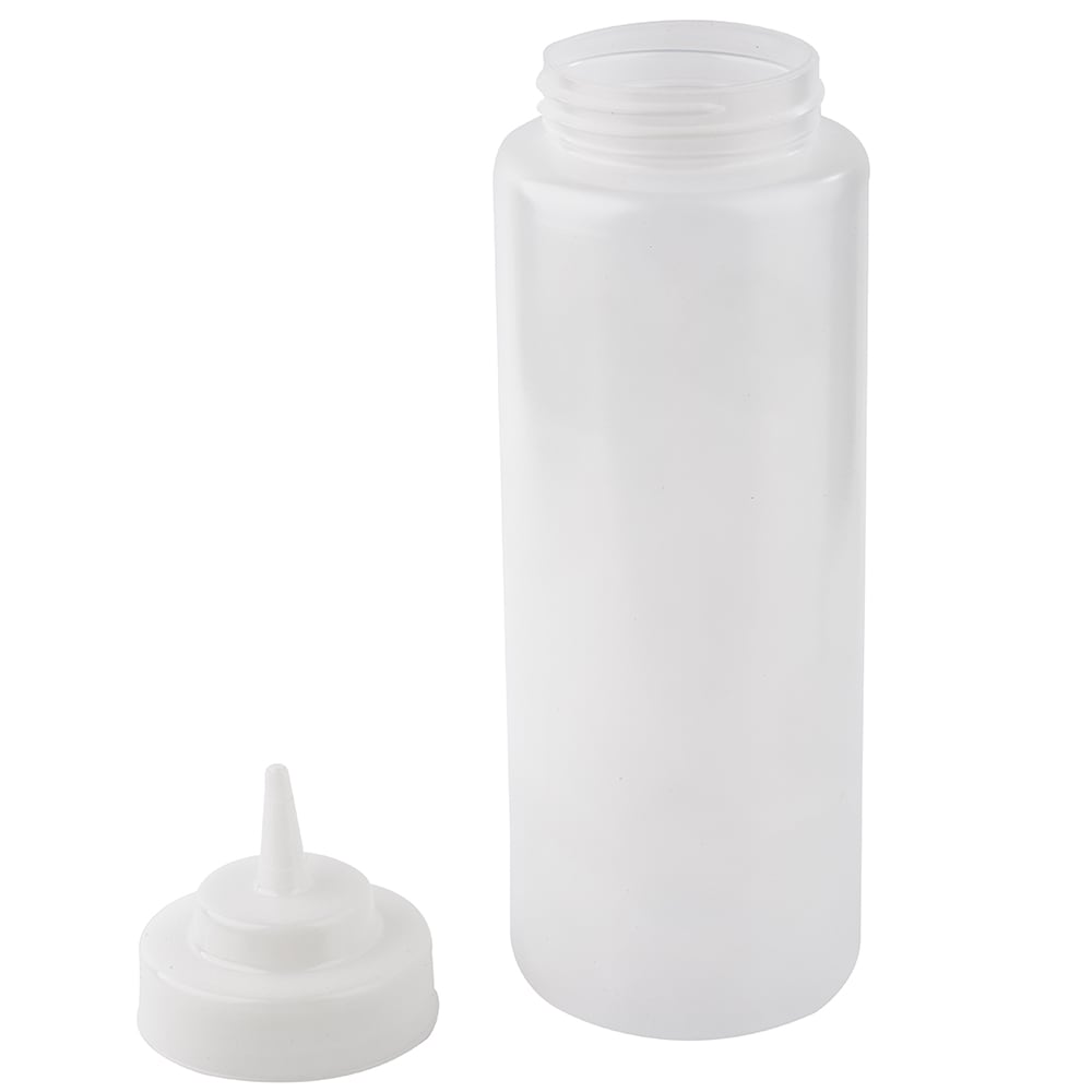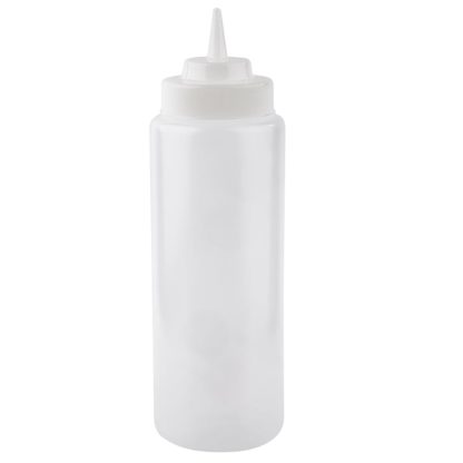 WideMouth Squeeze Bottle, 32 oz., 63mm opening, natural cone tip, dishwasher safe, soft polyethylene, clear, Made in USA, NSF