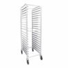 Bun Pan Rack, 20-1/4″L x 26″W x 69-1/4″H end load, round top design, holds 20 full size or 40 half-size pans, crossbars, aluminum tubing, (4) 5″ swivel casters (2-locking), NSF (assembly required)