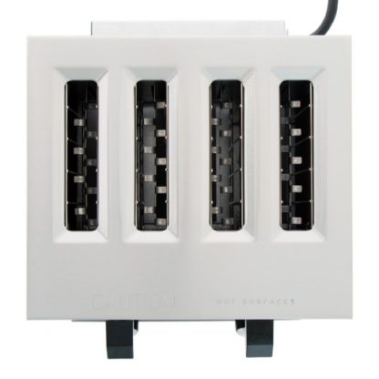 Built out of steel with an attractive mirrored stainless steel finish, the four-slice toaster will prove dependable through the years. With color selector knobs that let you set the toaster to meet customer’s tastes, it is equipped with solid-state controls. Operated by a traditional lever and rack system, foil heaters are located on either side of the slots, and bread pops up at the end of the cycle and is ready to serve. To get crumbs out and clean the appliance, pull out the tray located in the front and replace it with ease. If you’re looking for an economical and efficient way to provide toast for your patrons, completing their bacon and egg dishes, then the Toastmaster Pop-up Toaster is for you.