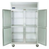 Dealer’s Choice Refrigerator, Reach-in, two-section, 45.89 cu. ft., self-contained refrigeration, (4) half-height solid doors (hinged left/right), (3) epoxy coated shelves per section (factory installed), stainless steel front, anodized aluminum sides & interior, microprocessor control with LED display, LED interior lights, 6″ high casters, non-flammable R-450A refrigerant, 1/3 HP, cETLus, NSF