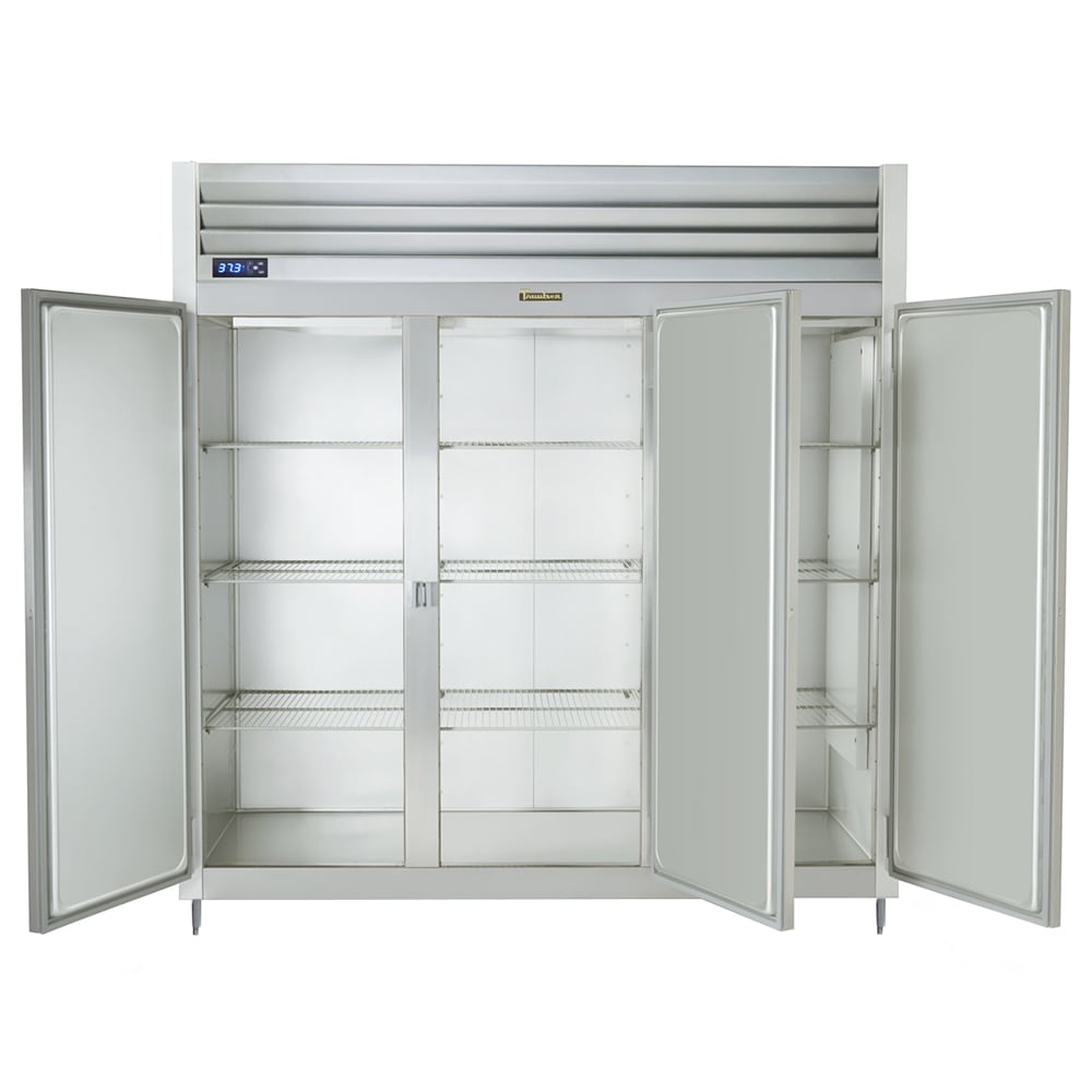 The Traulsen G31010 three-section reach-in freezer has nine durable shelves that resist rust due to their epoxy coating. A guard prevents employees from blocking the unit’s airflow pattern when loading the cabinet with product. Made completely of aluminum and stainless steel, this freezer is heavy duty and resistant to corrosion. Polyurethane insulation is foamed in place in the unit to ensure it retains cold air.