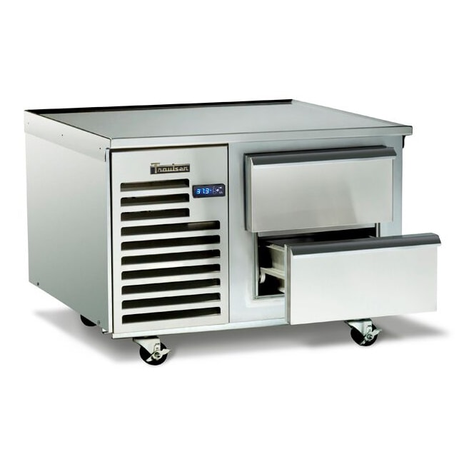 The Traulsen TE048HT refrigerated equipment stand is equipped with two self-closing drawers that can be removed to facilitate thorough cleaning. These drawers are insulated with high-density, foamed-in-place polyurethane to preserve chill and can be comfortably opened and closed with full-length handles. To facilitate precise temperature adjustment and monitoring, it features microprocessor controls and an LED temperature display. Because this unit’s refrigeration system its self-contained, it’s fast and simple to install.