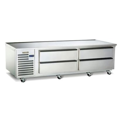 Spec-Line Refrigerated Equipment Stand, 72″ long, (8) 12″ x 20″ x 6″ deep pan capacity, front to back, (4) drawers, self-contained refrigeration, microprocessor control, stainless steel marine top, stainless steel interior & exterior, 4″ casters, microprocessor controls, 1/3 hp, cULus, NSF