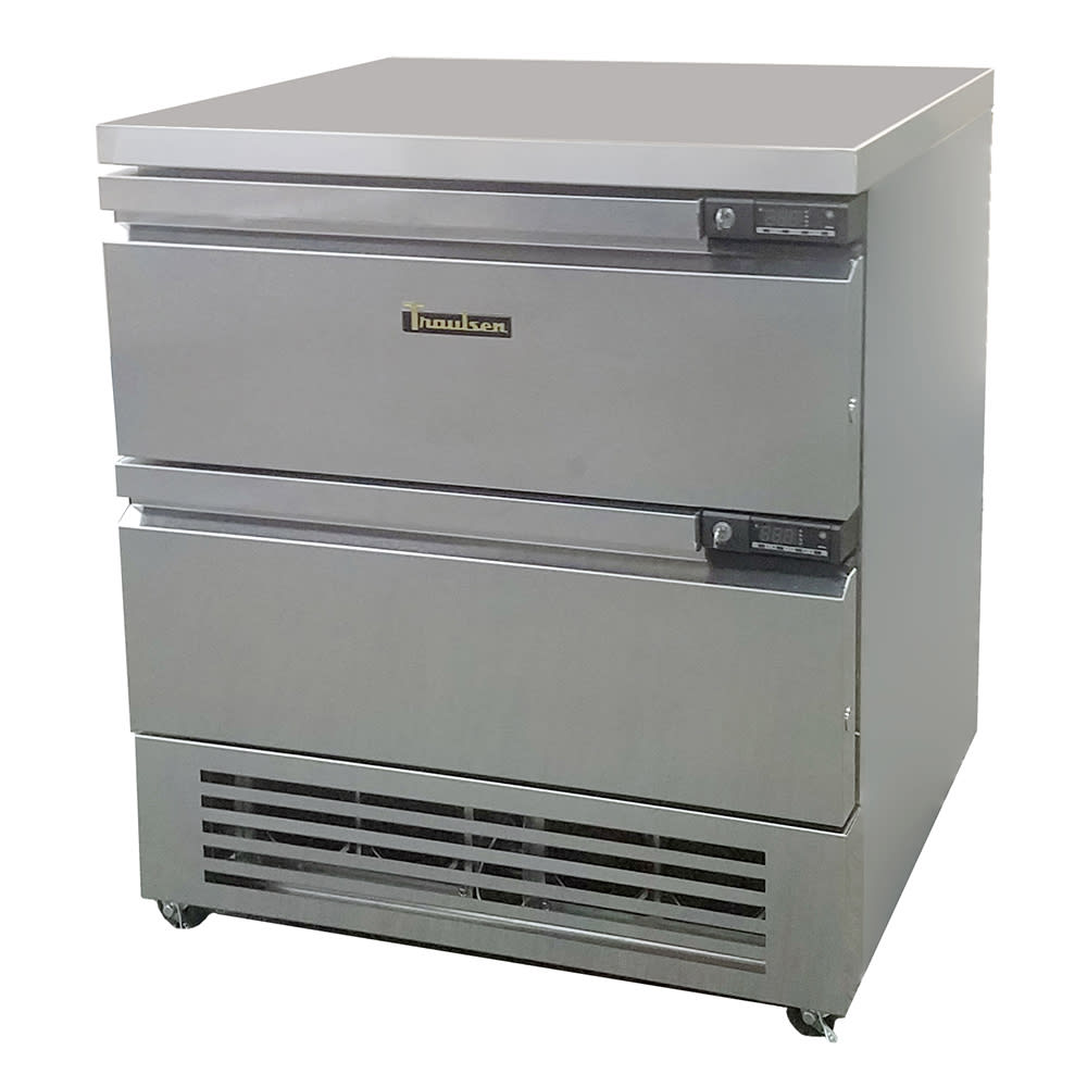 Spec-Line Flex Refrigerator and/or Freezer Equipment Stand, 31″W, 5.6 cu. ft. capacity, bottom mounted self-contained refrigeration, (2) drawers (locking), (2) independent electronic controls, LED temperature display, removable ABS drawer bins, stainless steel interior, top, front & sides, galvanized steel back & bottom, 2-3/4″ casters, Hydrocarbon R290 refrigerant, 2/5 HP, 115v/60/1-ph, 5.2 amps, cord, NEMA 5-15P, cETLus, ETL-Sanitation