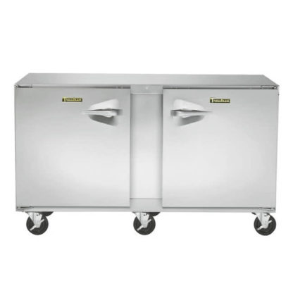Dealer’s Choice Compact Undercounter Freezer, Reach-in, two-section, 60″ wide, stainless steel exterior top, sides & door with Santoprene EZ-Clean Gasket, hinged left/right, anodized aluminum interior, galvanized exterior back & bottom, rear mounted, self-contained refrigeration, (6) 4″ casters, 1/2 Hp, cETLus, NSF