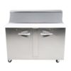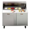 Dealer’s Choice Compact Prep Table Refrigerator with roll-top lid which serves as an overshelf, Reach-in, two-section, 48″ wide, holds (12) 1/6 pans 4″ deep (included), can accommodate up to 6″ deep pans, stainless steel exterior top, sides & door with Santoprene EZ-Clean Gasket, hinged left/right, anodized aluminum interior, galvanized exterior back and bottom, rear mounted, self-contained refrigeration, (4) 4″ casters, 1/4 HP, cETLus, NSF