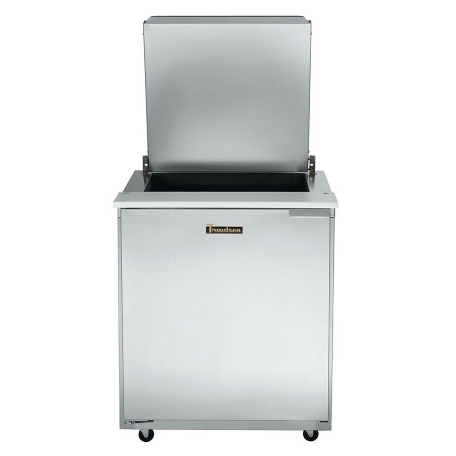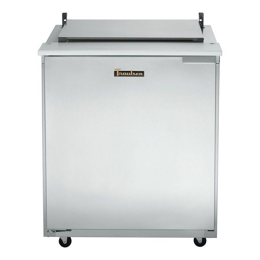 The Traulsen UST276-R Dealer’s Choice compact food prep table can be used to serve sandwiches or salads while taking up minimal space, which is important in establishments with size concerns. Standing up to rust and scratching damage, the table is made of stainless steel. Its surface has cutouts for sixth-size pans, and six are included with the unit. Also included is a full-length nylon cutting board, which can be flipped over to double its life. For temperature observation, the table includes a thermometer, as well as a cabinet with a corrosion-resistant interior and adjustable shelves. Its doors automatically close if they are opened less than 90 degrees, shutting in cold air, and past 105 degrees, they stay open for unhindered interior access. A rear-mounted refrigeration system cools the table and its cabinet, remaining out of the way while it works. Because this system breathes through the front, the prep table does not need clearance on the left or right.