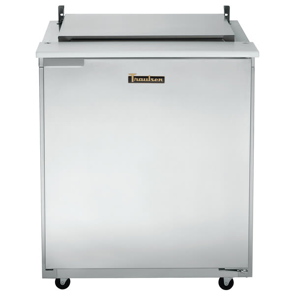 The Traulsen UST328-R Dealer’s Choice compact refrigerated prep table is a good option for kitchens or eateries that are limited on space but need suitable equipment for prepping salads or sandwiches. Adding durability and strength, the table is made of stainless steel to hold up to daily wear and tear. Its surface is built to hold sixth-size pans, and eight conveniently come with the unit. Also included is a white nylon cutting board which can be flipped, adding to its lifespan. Beneath the surface is a cabinet covered in anodized aluminum for corrosion resistance and fitted with two adjustable shelves for spare foodstuffs. In the base and in the cutout pans, the temperature stays at a set level between 34 and 38 degrees Fahrenheit. The whole unit is cooled by a self-contained refrigeration system, which is mounted at the back, and it uses capillary tubes and nonflammable, R450A refrigerant to maintain the correct temperature.