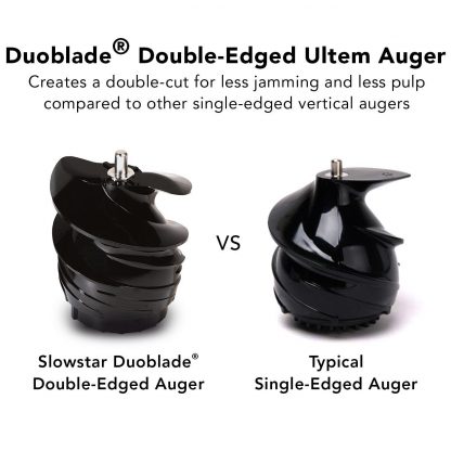 UNIQUE DUO-BLADE DOUBLE EDGED AUGER – The Duoblade Double-Edged Auger is made from the high-quality Ultem, which is up to 8 times stronger than traditional plastics used in other juicers, so cutting through fibrous produce like celery and carrots are a breeze. The uniquely designed Duoblade auger has two cutting edges for each revolution. This means that less pre-juicing prep is required and the juicing process is faster, allowing you to save time and energy while still incorporating nutrient-dense juices into your diet.