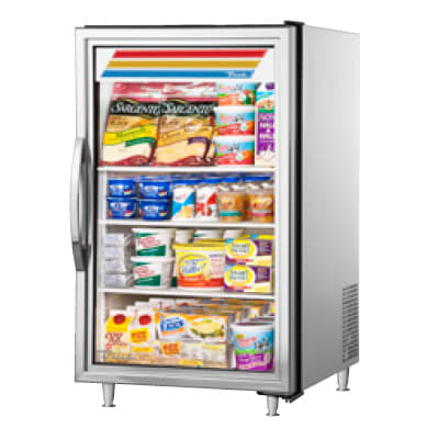 Foamed-in-place insulation in the cabinet retains cold air, while the aluminum interior provides corrosion resistance. With a stainless steel exterior to simplify cleaning, the True GDM-07-HC~TSL01 countertop refrigerated merchandiser is durable. It uses LED lighting to enhance product presentation through the glass door. This door has a 12-inch handle and self-closes if it is accidentally left open. A sign decal over the door draws customers to the refrigerator.