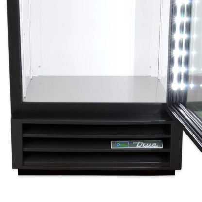 The True GDM-10-HC~TSL01 one-section glass door merchandiser is ideal for self-service environments such as convenience stores, retail stores, and sandwich shops. Its bottom-mounted condenser eases cleaning and maintaining, and its location raises the unit’s bottom shelf so contents kept there are readily seen and accessible. A capillary tube system uses R290 hydrocarbon refrigerant for consistent cooling at temperatures ranging from 33 to 38 degrees Fahrenheit. Less heat is produced and energy consumption is decreased since the evaporator and condenser fan motors provide a more consistent volume of air.