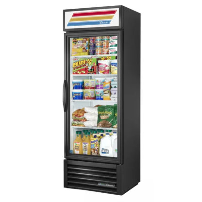 Designed using quality materials and perfected technology, the True GDM-19T-HC~TSL01 one-section glass door merchandiser is perfect for holding packaged and bottled products. The double-pane, thermal-insulated glass door is surrounded by a sturdy aluminum frame with an easy-grip handle and a self-closing feature to ensure that products are sealed uptight. A magnetic door gasket keeps cold air from escaping and removes it for cleaning and servicing. Four heavy-duty, PVC-coated wire shelves are adjustable on 1⁄2-inch increments, so they can accommodate different heights of products.