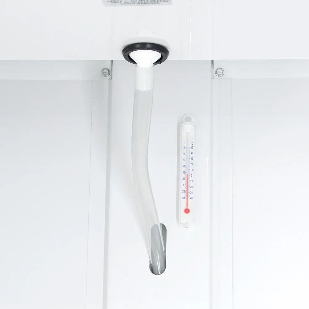 - Drain built into the bottom of the cabinet facilitates cleaning