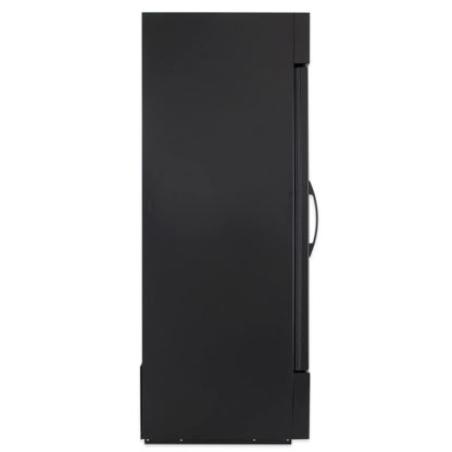 The True GDM-26-HC~TSL01 one-section glass door merchandiser is equipped with a self-contained capillary tube system, which is designed to maintain even temperatures from 33 to 38 degrees Fahrenheit. To keep temperatures cold, the capillary tube system uses environmentally friendly R290 hydrocarbon refrigerant. Since the evaporator and condenser fan motors move a consistent volume of air, energy consumption is reduced and heat production is minimized. The bottom-mounted condensing unit supports the maintenance and creates a no-stoop lower shelf that displays the product. Coated in epoxy, the evaporator resists corrosion. The True GDM-26-HC~TSL01 one-section glass door merchandiser comes standard with a white powder-coated exterior that is durable, will not chip or peel, and hides scratches and dents due to its dark design. To brighten the cabinet, the interior is fitted with a white aluminum liner and LED lighting. Cold air stays inside the cabinet since its polyurethane insulation is foamed in place. An exterior illuminated sign panel draws customers to the merchandiser. Cleaning the interior of the cabinet is facilitated by the stainless steel floor and its built-in drain.