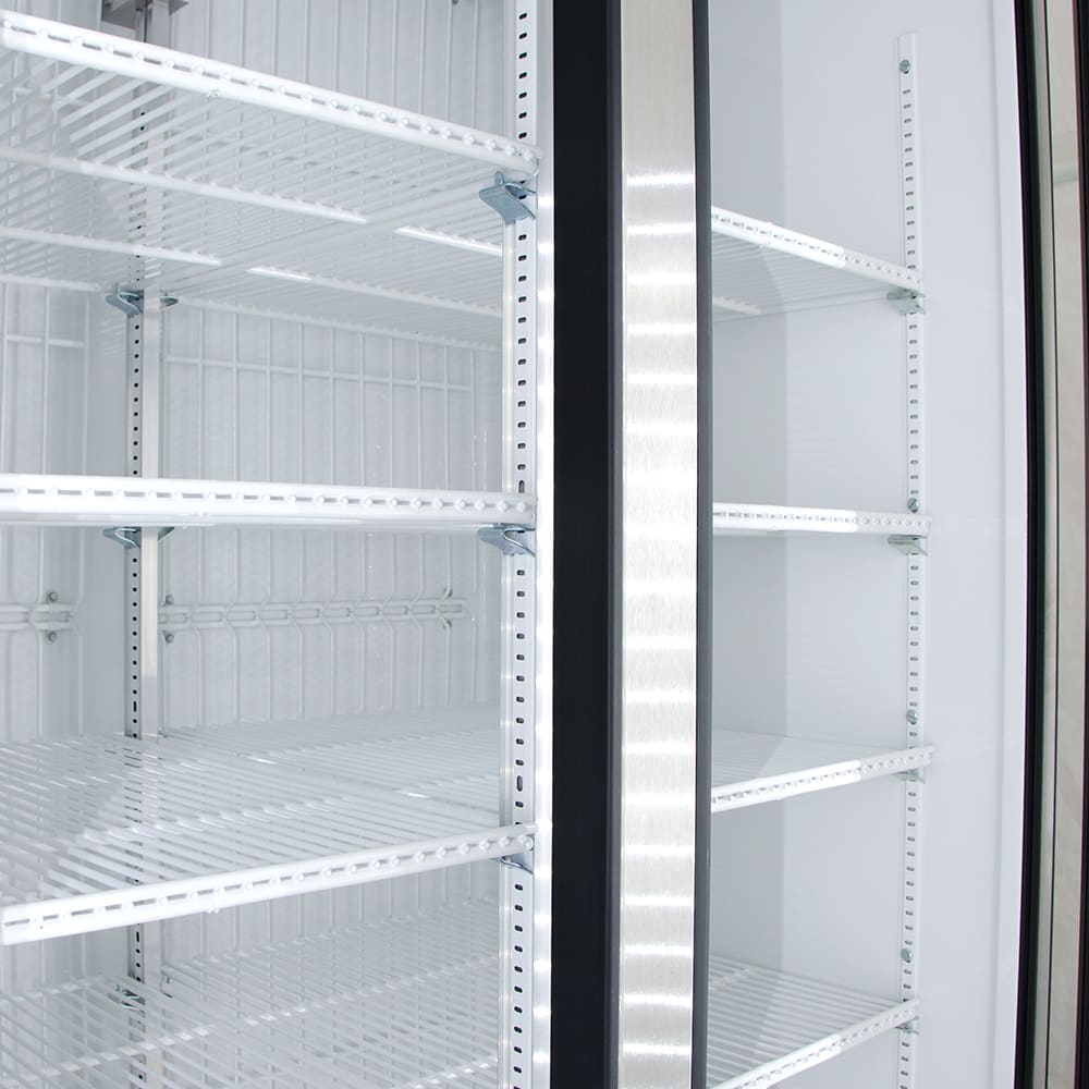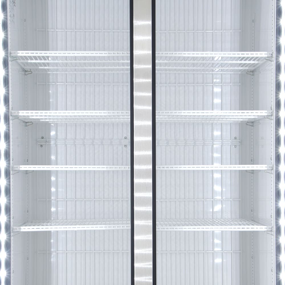 - LED interior lights provide product visibility