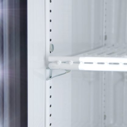 - Self-closing doors help keep cold air in the cabinet