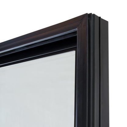 - Triple-pane, thermal-insulated glass door has an extruded aluminum frame