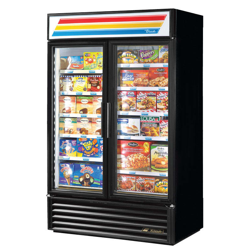 Perfect for high-traffic areas, the black powder-coated exterior is durable enough to endure heavy use in most establishments. A white aluminum cabinet liner creates a clean appearance and adds durability to the interior. The True GDM-43F-HC~TSL01 two-section display freezer has polyurethane insulation that is foamed in place to help keep cold air inside while the doors’ magnetic gasket seals off any cracks. Both doors are thermal insulated and made of glass so that people can see inside. Adjusting in 1⁄2-inch increments, eight PVC-coated wire shelves accommodate a variety of displayed items in the cabinet’s interior.