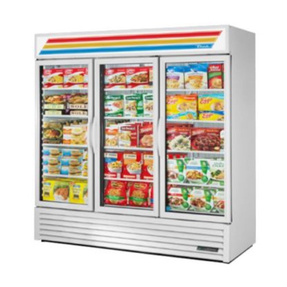 Freezer Merchandiser, three-section, True standard look version 01, -10°F, (12) shelves, (3) triple-pane thermal glass hinged door, LED interior lights, powder coated steel exterior, white interior with stainless steel floor, R290 Hydrocarbon refrigerant, 1 HP, 115/208-230v/60/1-ph, 11.1 amps, NEMA 14-20P, cULus, UL EPH Classified, Made in USA