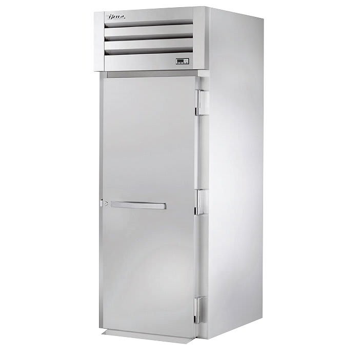 This True STG1RRI89-1S Spec Seriesâ„¢ one-section roll-in refrigerator has a door made of stainless steel and aluminum exterior sides to match. Its interior sides and back are aluminum with a stainless steel ceiling and floor, which resist corrosion and are simple to clean. Its walls are foamed with polyurethane insulation for structure and temperature retention. With its roll-in design, a stainless steel ramp enables carts and racks to be rolled in.