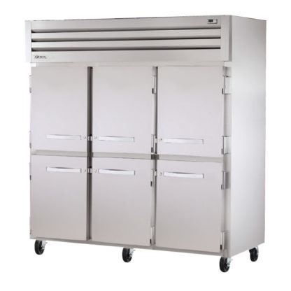 SPEC SERIES® Freezer, reach-in, three-section, -10°F, (6) stainless steel half doors with locks, cam-lift hinges, digital temperature control, (9) gray shelves, LED interior lights, stainless steel front, aluminum sides, aluminum interior, 5″ castors, 2-3/4 HP, 208-230v/60/1-ph, 8.3 amps, NEMA 5-15P, cULus, UL EPH Classified, Made in USA
