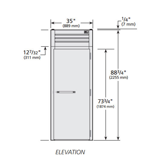 SPEC SERIES® Heated Cabinet, roll-in, 89″H, one-section, (1) stainless steel door with lock, cam-lift hinges, color-coded temperature display, interior lighting, stainless steel front & sides, stainless steel interior, stainless steel ramp, 2.0kW, 115/208-230v/60/1-ph, NEMA 14-20P (accommodates 27″W x 29″D x 72″H cart, NOT included), cULus, UL EPH Classified, Made in USA