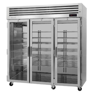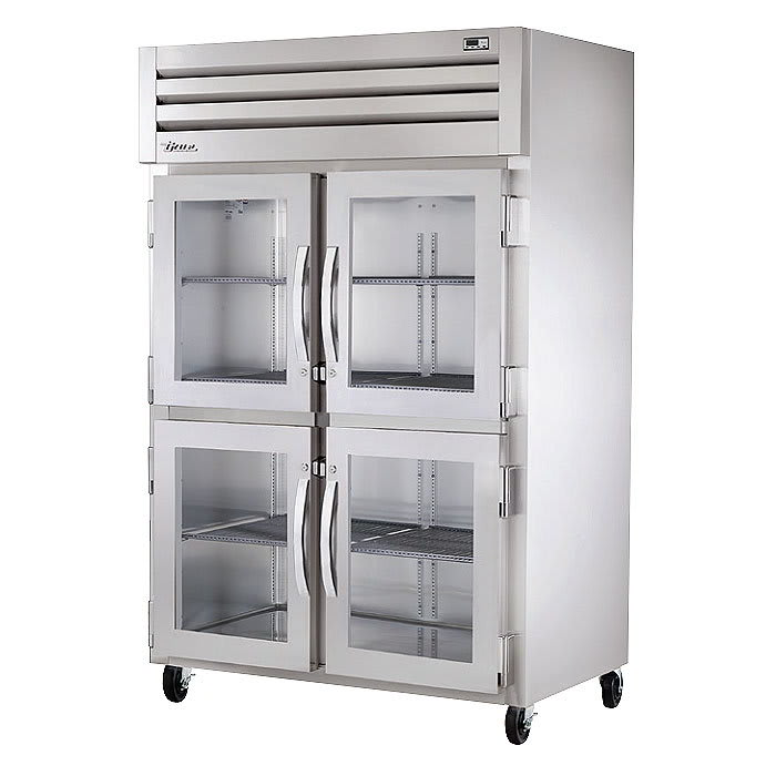 Operating at a set level between 140 and 180 degrees Fahrenheit, the True STR2H-4HG Spec Series® full-height heated cabinet keeps baked food warm. Temperatures can be set by the operator on the electronic control and monitor it on the external display. Uniform heat distribution in the cabinet is provided by low-velocity fans to keep all stored items evenly heated, and the cabinet has a vent on the top, so users can adjust the amount of steam that escapes to reach the ideal humidity level.