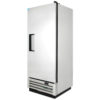 The solid door has a stainless steel exterior with a white aluminum liner and is self-closing to help keep cold air in the cabinet. A 12-inch-long recessed handle is permanently foamed in place with a sheet metal interlock. Magnetic door gaskets prevent cold air leaks. Products are stored on three heavy-duty, PVC-coated wire shelves, adjustable in 1⁄2-inch increments. For corrosion resistance and easy cleaning, the exterior and interior of the True T-12-HC reach-in refrigerator are made of stainless steel.
