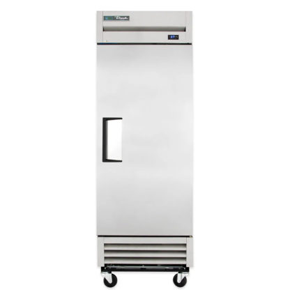 Because it is mounted in the bottom, the refrigeration system in this True T-19F-HC single-section reach-in freezer runs in the coolest area of the kitchen. The internal temperature stays at -10 degrees Fahrenheit and displays on an external screen.