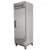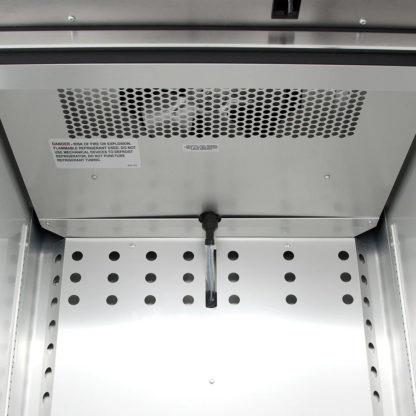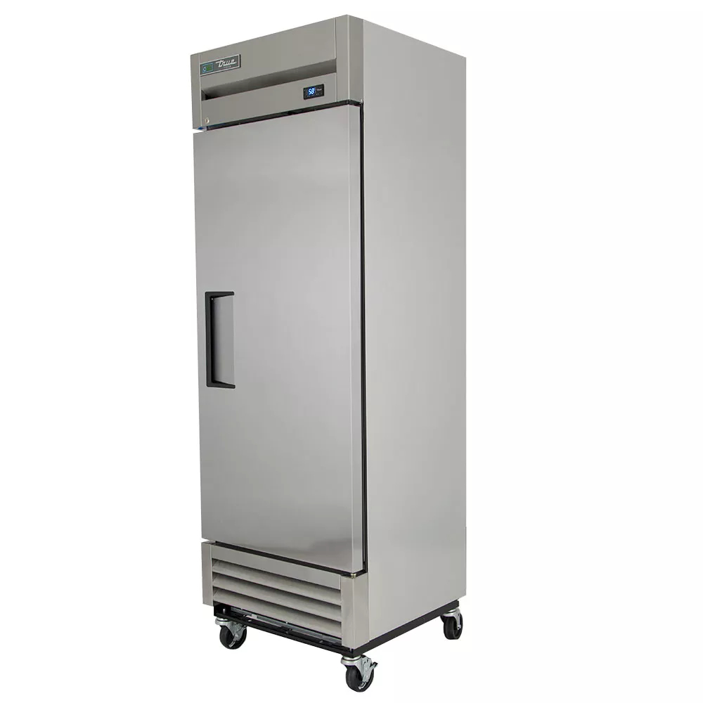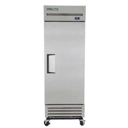The True T-19FZ-HC reach-in freezer maintains a temperature of 0 degrees Fahrenheit, and staff members can monitor it with an external display. The temperature stays cool with R290 hydrocarbon refrigerant that runs through a capillary tube system. To protect the evaporator, an epoxy coating is applied to it. Evaporator and condenser fans move air consistently to reduce heat. Since the condensing unit is mounted on the bottom, it is in the coolest area of the kitchen.