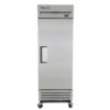 With a stainless steel floor and aluminum liner, the interior of the True T-19FZ-HC reach-in freezer is resistant to scratches, dents, and corrosion. Polyurethane insulation is foamed in place to provide structure and retain cold air. A black, powder-coated frame rail also adds stability and is mounted with castors for mobility. Inside the cabinet, product sits on three adjustable shelves that are coated in PVC for corrosion resistance. The stainless steel door has a recessed handle and lock.